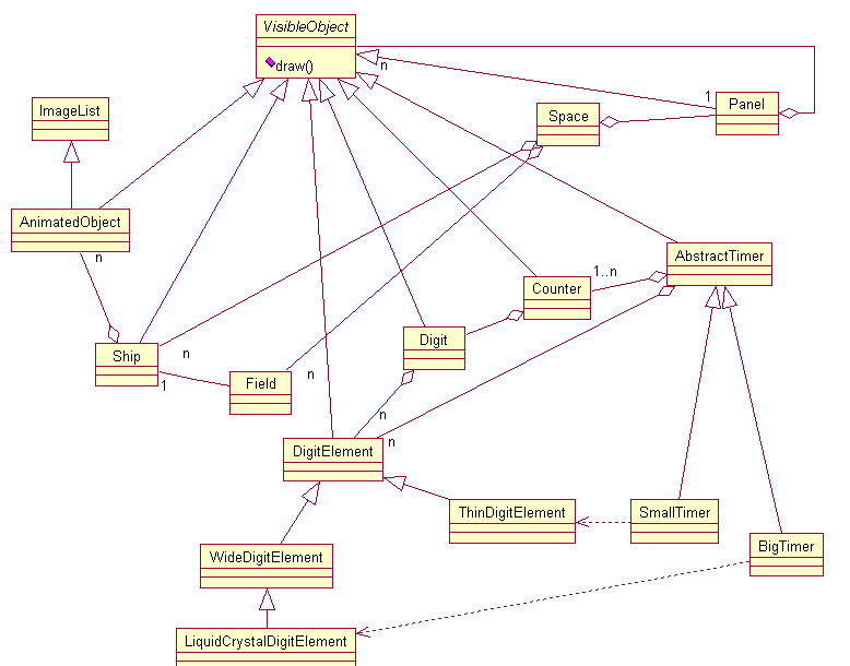 draw() from VisibleObject. Class uses objects Digit for each digit and
